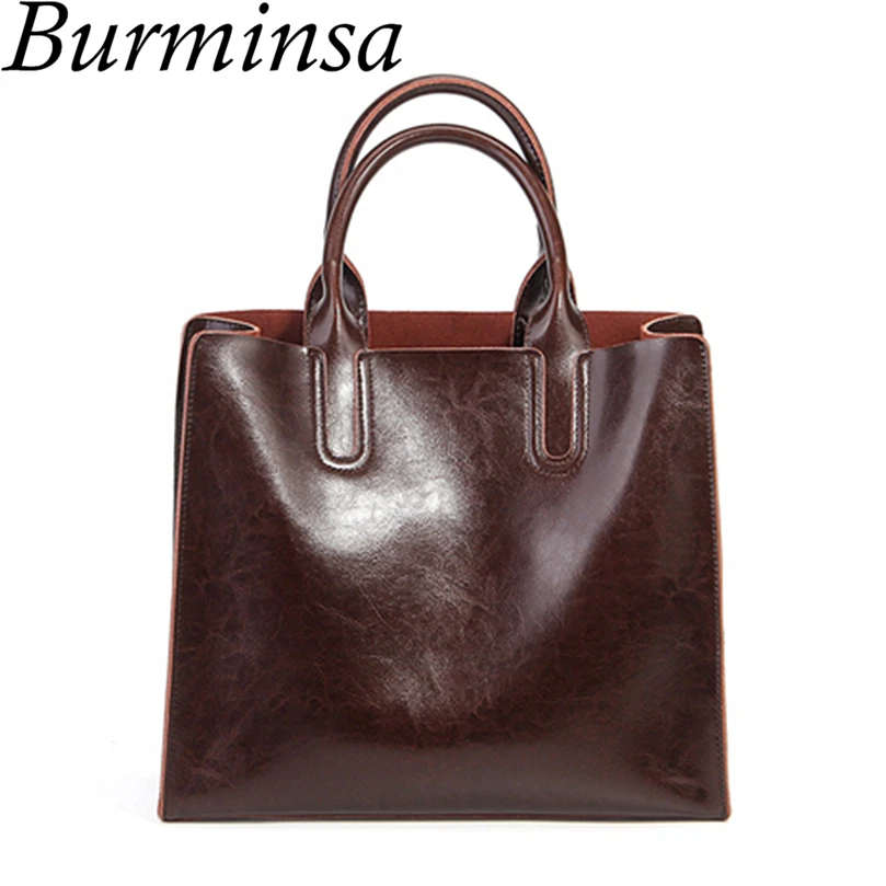 Good Burminsa marca mano de cuero real Bolsas señoras Cuero auténtico mano Bolsas femenino diseñador shopper Bolsos de hombro para las mujeres 2017 offers