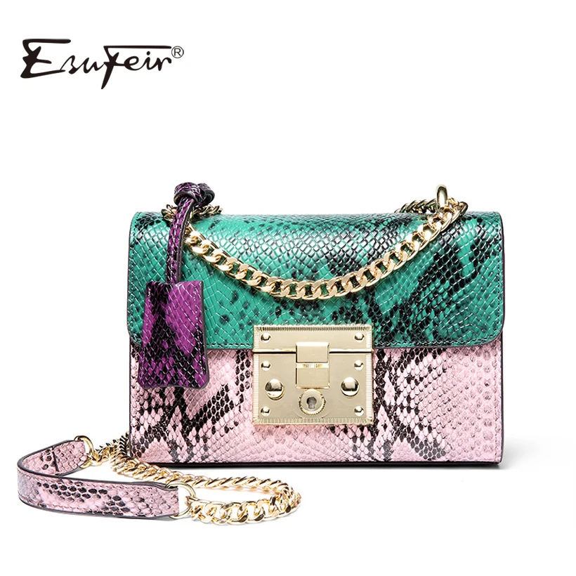 Cheap Esufeir marca mujeres bolsa de mensajero Cuero auténtico serpentina crossbody bolsa diseño de moda bolso Cadenas mujeres bolsa offers