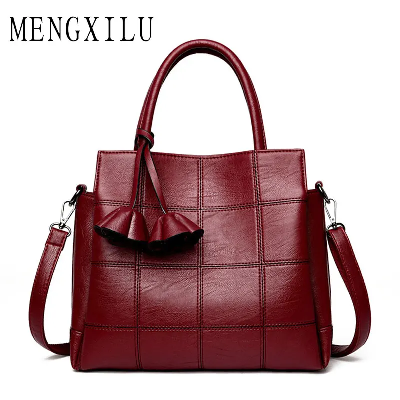 Best Mengxilu moda Plaid mujeres de cuero Bolsas mano Bolsas mujeres famosas marcas 2017 diseñador de lujo Rosa hombro femenino las señoras offers