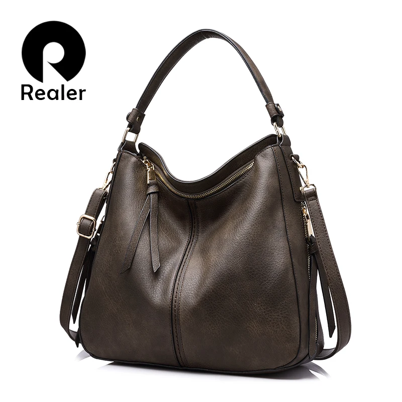 Cheap Realer bolsos mujeres hombro crossbody bolso mujer casual grandes totes cuero artificial de alta calidad señoras del Hobo bolsa de mensajero offers
