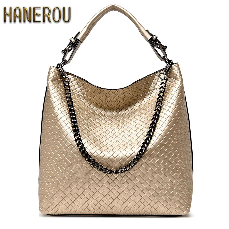Cheap 2018 cadena bucket mujer bolso nueva moda pu cuero mujer bolso de hombro grande marca de lujo señoras mano bolsas totalizador grande un Bolso principal offers