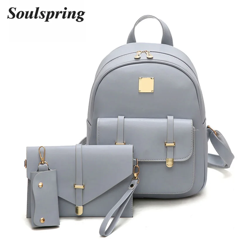 Good Moda composite bolsa pu Mochila De Cuero mujeres lindo 3 Sets escuela mochilas para adolescentes Niñas negro Bolsas carta sac A dos offers