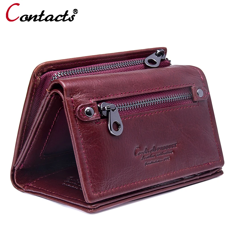 Best Contacto de cuero genuino mujeres carteras y monederos mujer monedero pequeño dinero embrague diseño femenino Cartera de color rojo nuevo offers