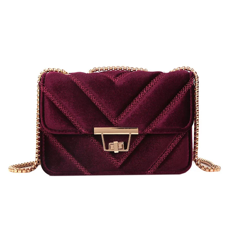 You increíblemente afortunados. La mercancía Estás buscando Mujeres V forma diamante mensajero velour bolso girar la cerradura señoras bolso de lujo Suede cadena acolchado Bolsos de hombro. Vemos descuentos en productos.
